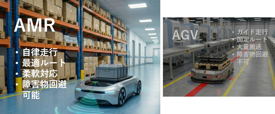 特に変化の多い作業環境や、人との共存が求められる現場では、AMRの柔軟性が大きなアドバンテージとなります。