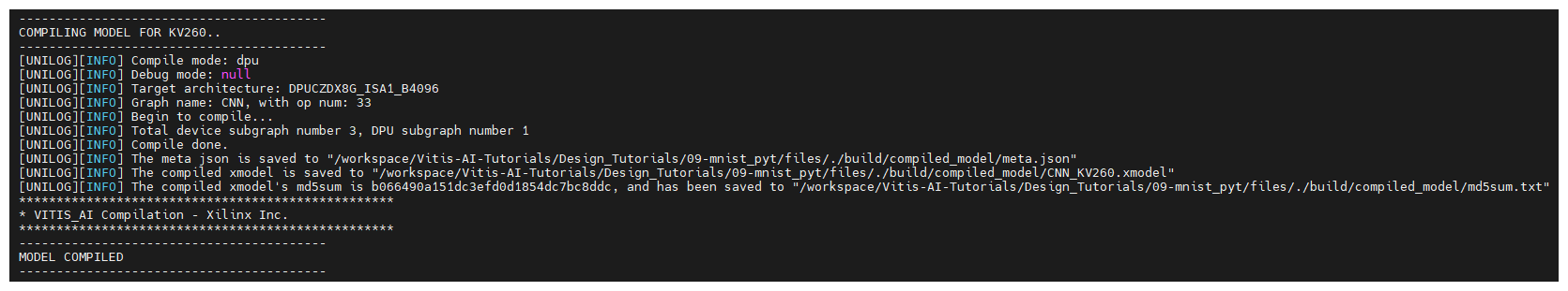 成功すると以下のような画面になります。コンパイル済みモデル(xmodel)が生成されます。